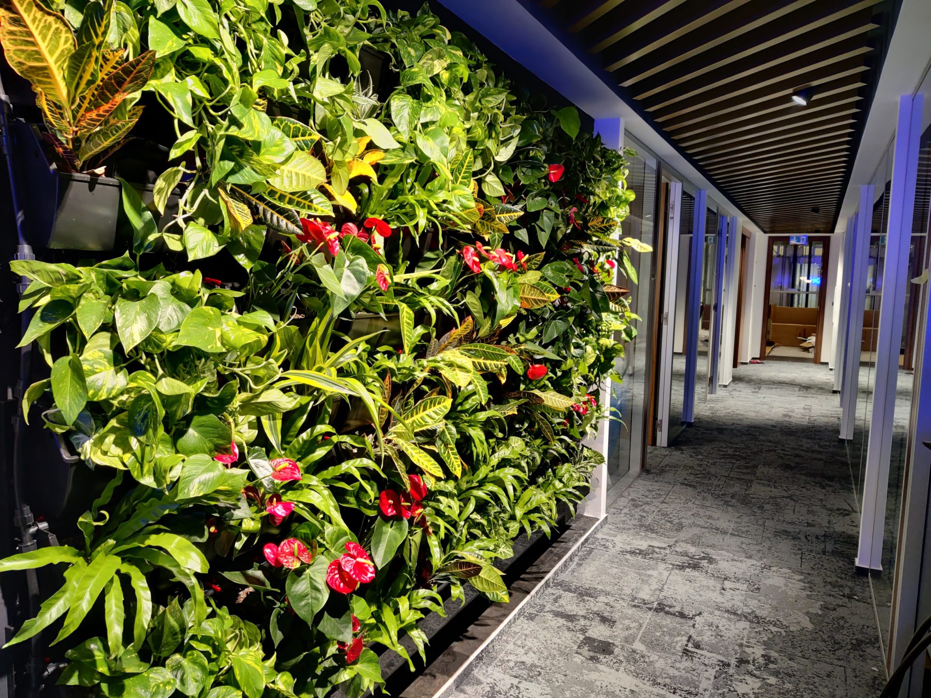 Stěny ze živých rostlin vytváří výrazný estetický prvek v interiéru a jsou nezávislé na denním světle.