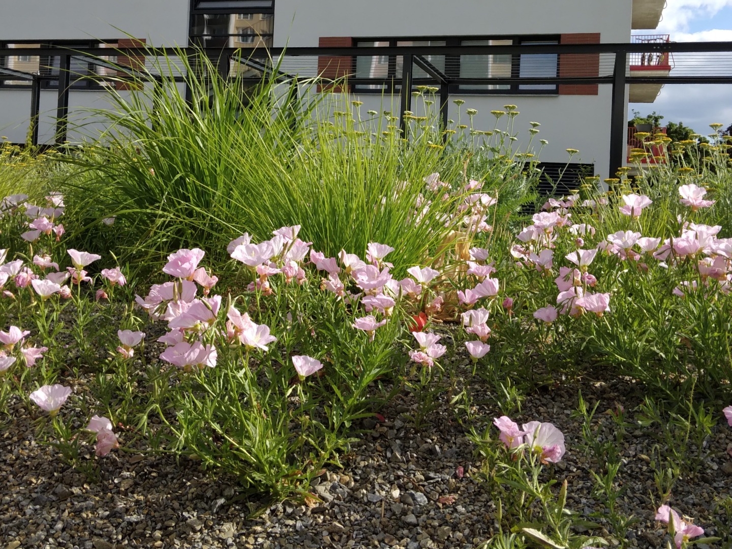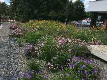 Na střeše podzemních garáží v brněnské Lesné jsme vybudovali poklidnou střešní zahradu, která od jara do podzimu krásně kvete. Rozmanité květiny a rostliny si můžete prohlížet například z přilehlé kavárny – a určitě vás ani nenapadne, že prostor pod vámi slouží jako parkoviště.