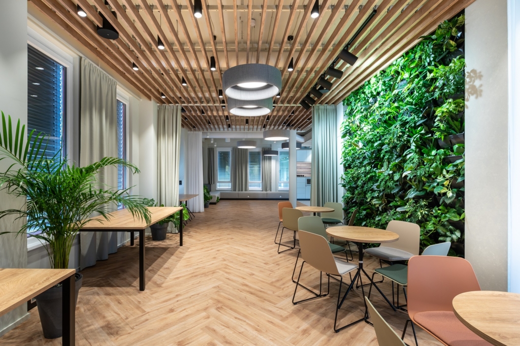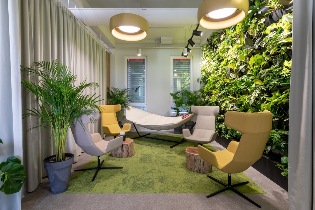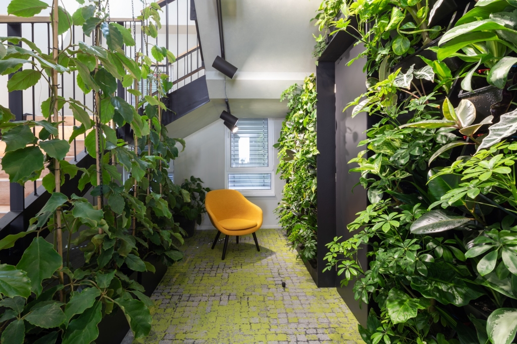 - the plants used were Ficus, Monstera, Aglaonema, Strelitzia, Dypsis, Tetrastigma, and on the staircase Rhipsalis, Nolina, Dracaena