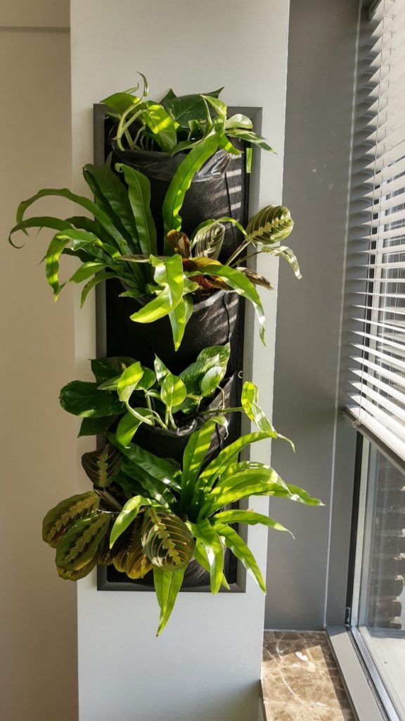 If you combine indoor plants with other materials such as wood, metal, or glass, you get some interesting interior accessories. In this case, we set plants into a minimal metal construction with its own lighting, which makes the area it is placed in a lot more cozy and relaxing. We also created a green partition wall which can be easily used to effectively modify the workspace.